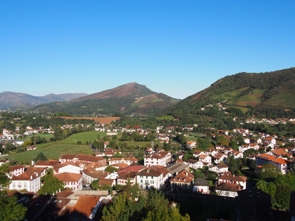 町には城塞が残っており、上まで登ると町が一望できます!バスクの家々は、壁は白、窓枠は赤(地方によっては緑や青もOK)と決められていて、