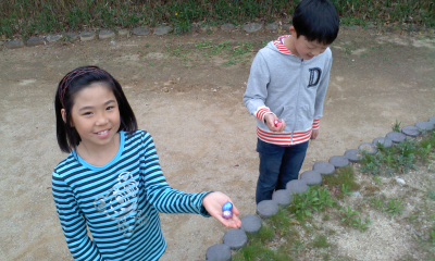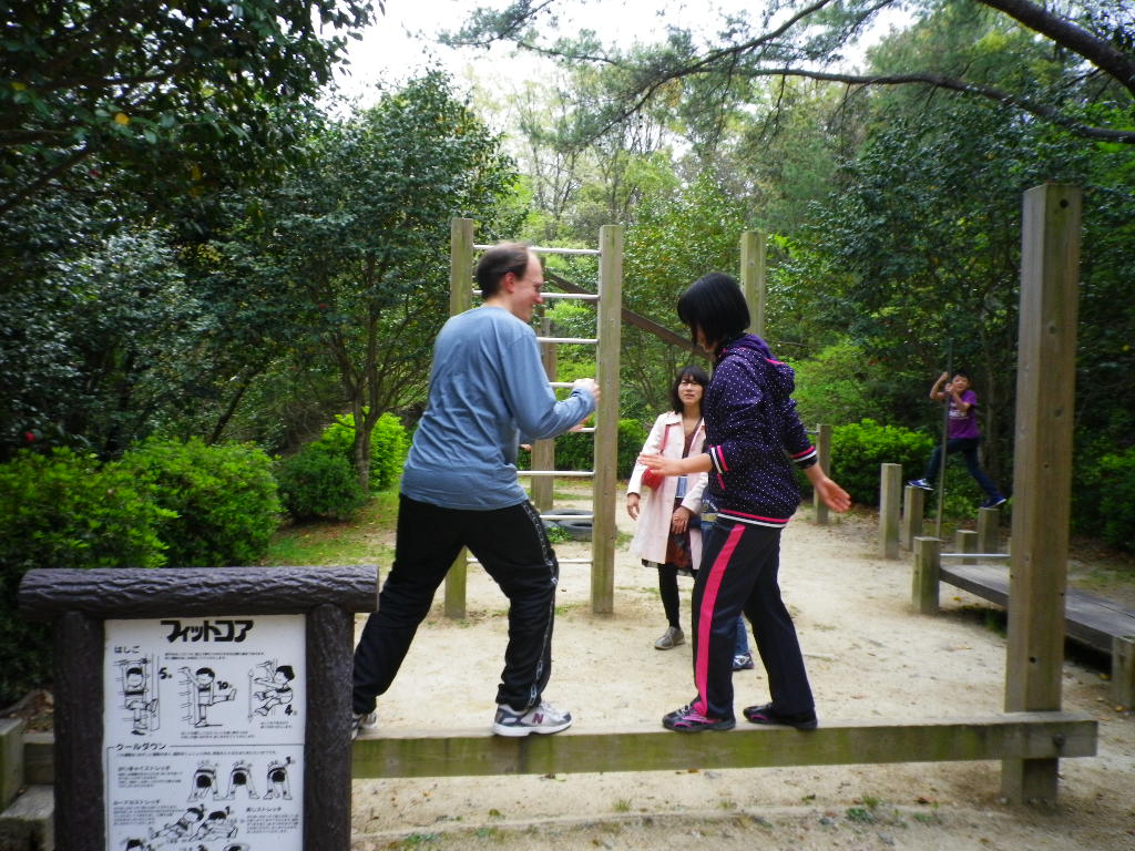 小さなアスレチックスペースも。平均台にのって、落としあい(笑)みなさん、本気ですね!