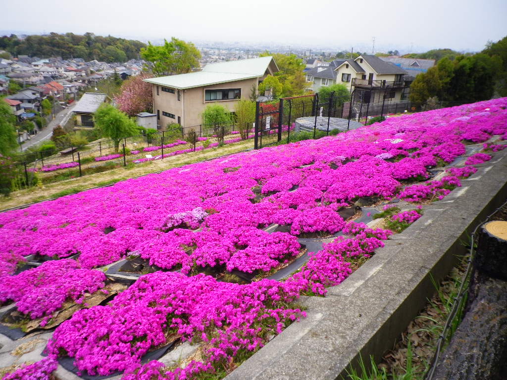 途中、シバザクラが満開に咲いた展望所で休憩。