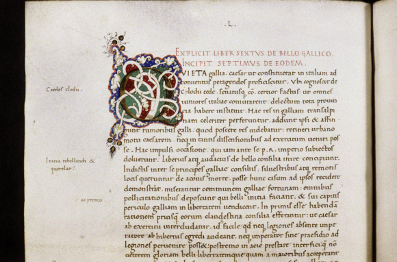 こちらは綺麗なイタリアのルネッサンス時代の原稿で、「ガリア戦記」第7巻 の初めの部分です。