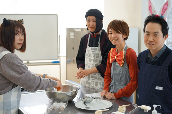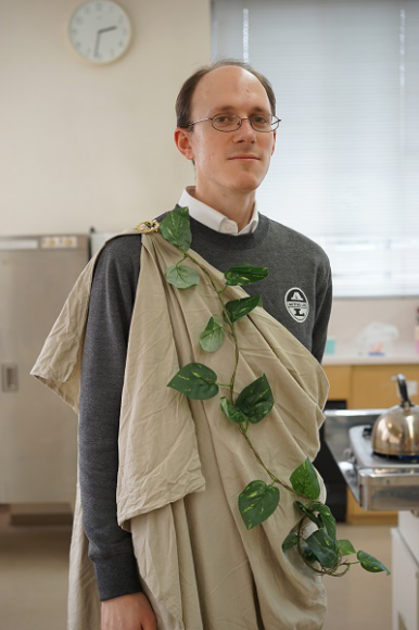 Bien sûr, comme c’était Carnaval, nous nous sommes déguisés ! Rémi et moi, étions en Romains. Parmi les étudiants, il y avait deux lapins (un rose et un bleu), une Minnie, un clown, un « Korirakkuma », un chat, une chinoise et trois masques ! Bravo !