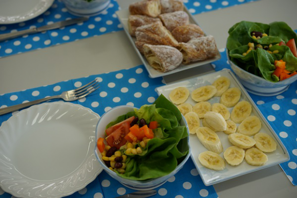 Nous avons fait des crèpes salées et sucrées, et j’ai acheté les beignets à la boulangerie.