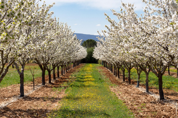 写真 ヨーロッパの桜はサクランボが出来て真っ白です。ローマ人のお花見はたぶんこんなかんじだった!^^