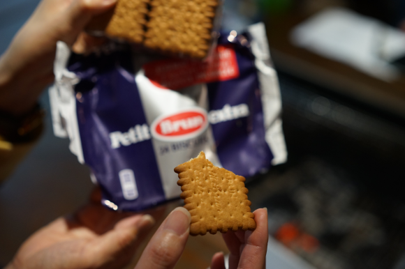 Néanmoins, nous nous sommes bien amusés. Le barbecue était couvert, donc nous avons pu manger au sec. Au menu, onglet, côte de bœuf, légumes et hot-dog parisien (baguette, saucisse, moutarde). Plusieurs personnes avaient apporté des biscuits et des chocolats pour le dessert, alors on a bien mangé ! ^^