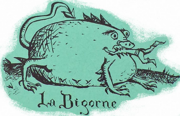 Ces créatures vivent toujours par deux. Bigorne ressemble à un tigre très très gros avec un très très gros ventre. Chicheface lui, ressemble à un loup qui est tout maigre. Chicheface est tout maigre car il mange seulement les femmes qui sont gentilles avec leurs maris (et il n’y en a pas beaucoup). Bigorne lui est très gros parce qu’il mange, au contraire, les hommes qui sont persécutés par leurs femmes (et il y en a beaucoup).