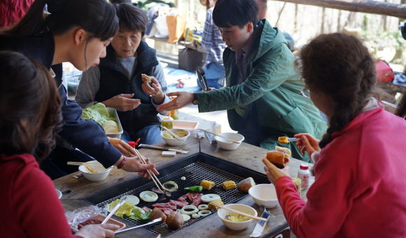 Il faisait un temps magnifique ce dimanche 2 avril, n’est-ce pas ? Vous êtes sortis ? Nous, nous avons fait un super BBQ dans la forêt de Myoken. Il y avait vingt neuf personnes...